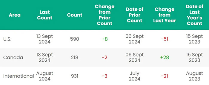 9月13日,貝克休斯報告中顯示,美國能源公司本周增加了石油和天然氣鉆井平臺,這是五周來首次出現(xiàn)一年來更大的單周增幅。作為未來產(chǎn)量的早期指標(biāo),石油和天然氣鉆機(jī)數(shù)量在截至9月13日的一周內(nèi)增加了8臺,達(dá)到590臺,回到了6月中旬的水平。這是自截至2023年9月15日的那一周以來的更大漲幅。盡管本周鉆井平臺數(shù)量有所增加,但貝克休斯表示,與去年同期相比,鉆井平臺總數(shù)仍減少了51臺,即8%。貝克休斯表示,本周石油鉆機(jī)增加5臺,至488臺,天然氣鉆機(jī)增加3臺,至97臺。油氣鉆井平臺數(shù)量在2022年和2021年分別增長33%和67%后,在2023年下降了約20%,原因是油氣價格下跌、通貨膨脹加劇導(dǎo)致勞動力和設(shè)備成本上升,以及企業(yè)更關(guān)注償還債務(wù)和提高股東回報,而不是提高產(chǎn)量。美國石油期貨在2023年下跌11%后,2024年迄今下跌約3%;美國天然氣期貨在2023年暴跌44%后,2024年迄今下跌約7.5%。